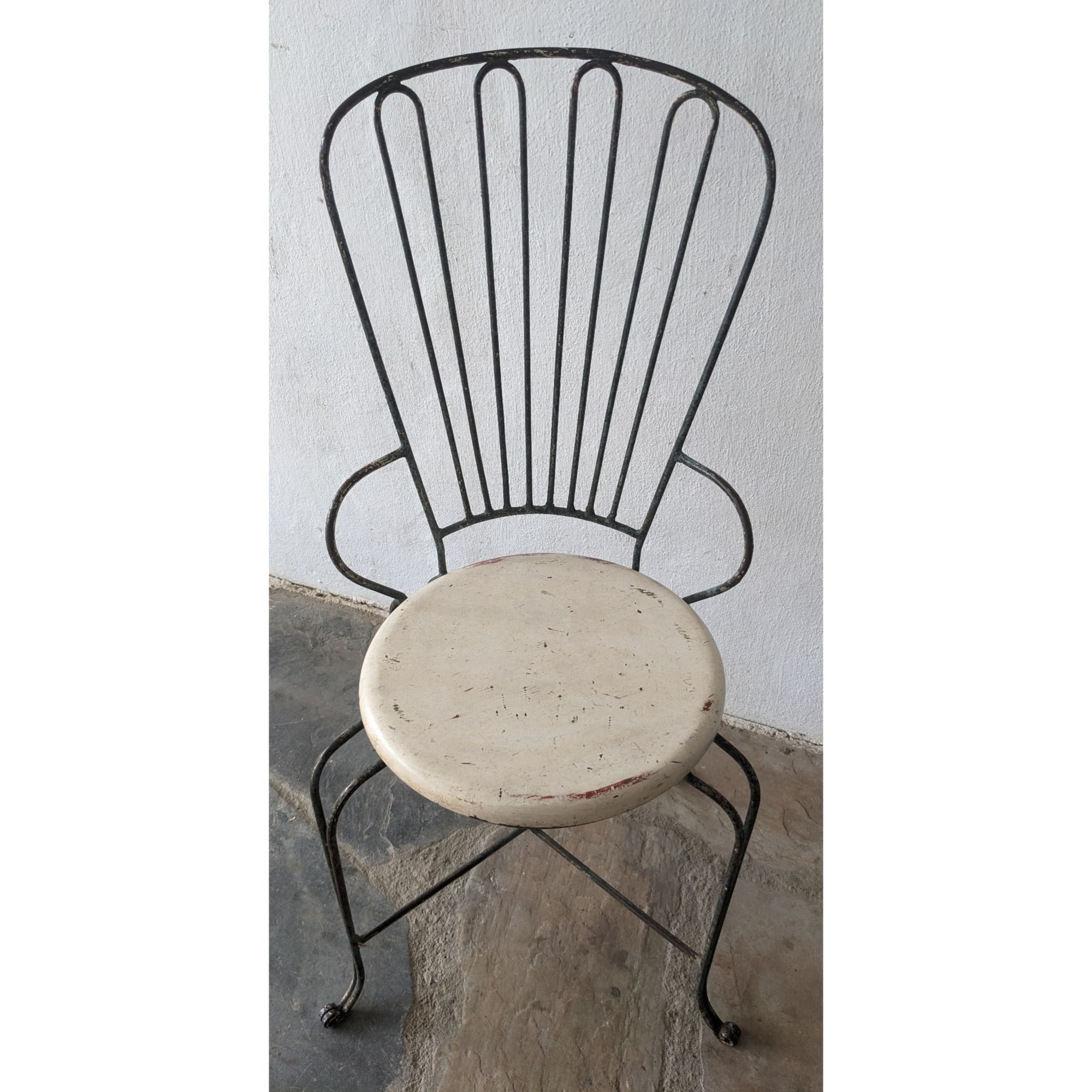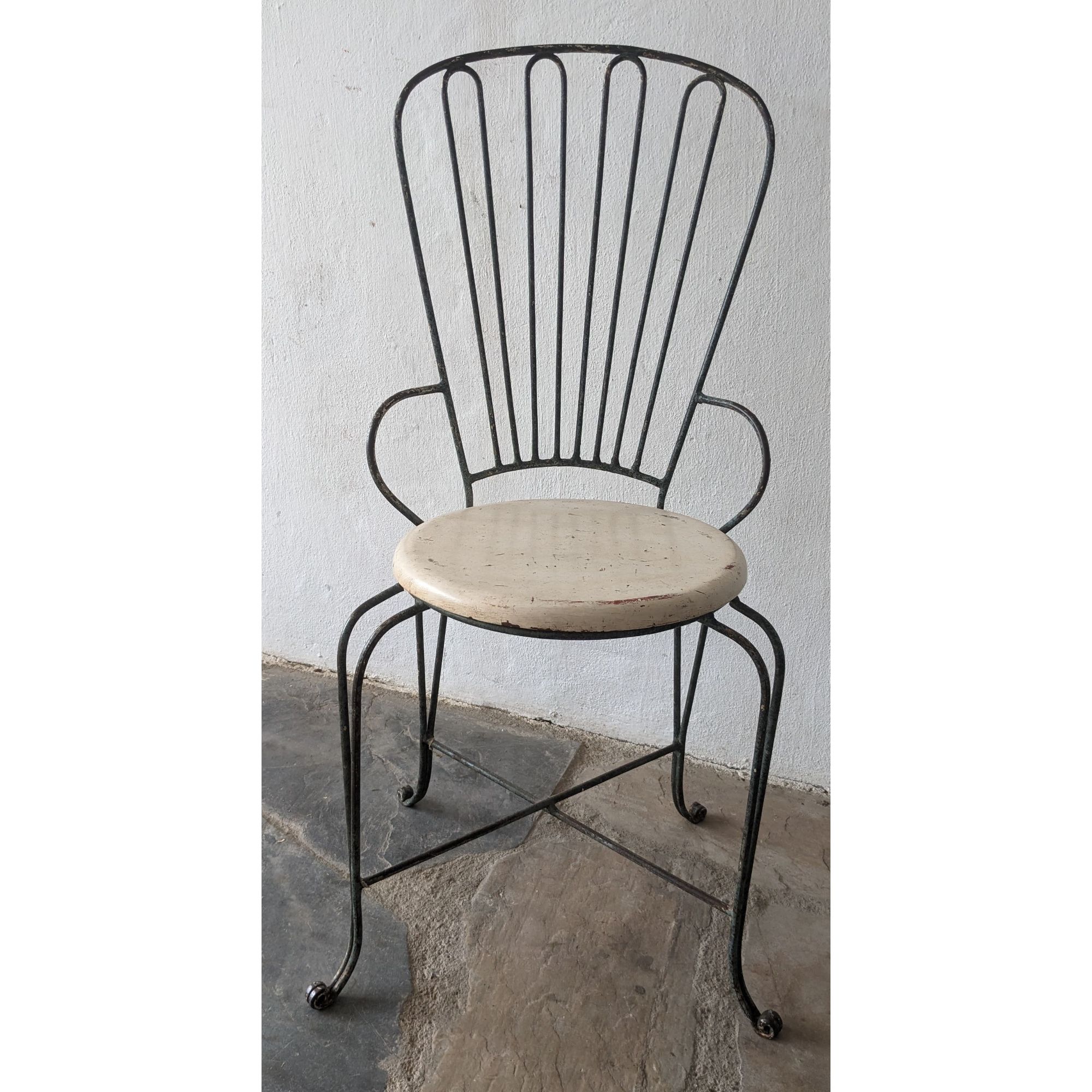 Silla Antigua De Hierro, Asiento De Madera